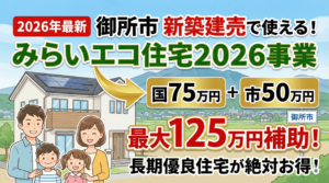 【2026年最新】御所市の新築で使える補助金「みらいエコ住宅2026事業」を徹底解説 御所市独自の「御所市住宅取得補助金」も