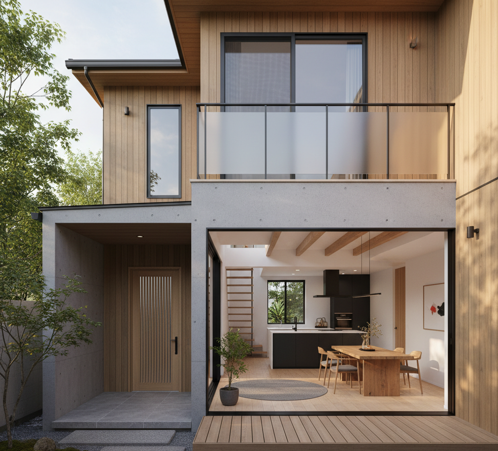 - モノトーンや木目を組み合わせたスタイリッシュ外観
