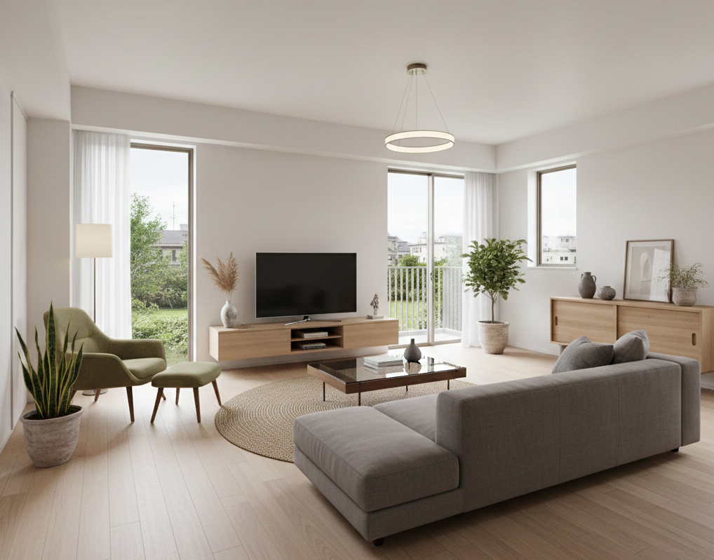 A. アップライトピアノなら可能ですが、配置場所が限られます。床補強や防音の観点からも、壁際(隣家と接していない側推奨)のスペースを確保できるか図面で確認しましょう。 - Q. ソファなしの生活ってどうですか?