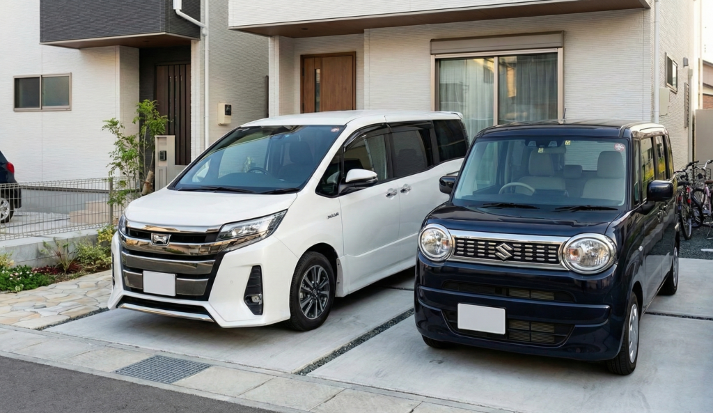 「とりあえず2台入ればいい」という基準で選ぶと、毎日の乗り降りでドアを壁にぶつけそうになったり、雨の日に荷物の積み下ろしができず、家を買ったことを後悔する原因になります。まずは、三郷町で暮らすための「車種別・最小サイズガイド」をご覧ください。