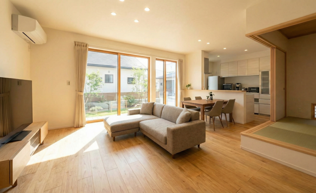 僕も年間1,500棟以上の物件を見ていますが、王寺町の建売物件の約7〜8割はこの「16〜18帖」の範囲に収まっています。これは土地の価格と建物の大きさ(30坪前後)のバランスから導き出された、いわば「建売の黄金比」なんです。狭いと感じるかどうかは、数字よりも「形」と「家具の置き方」で決まりますよ!